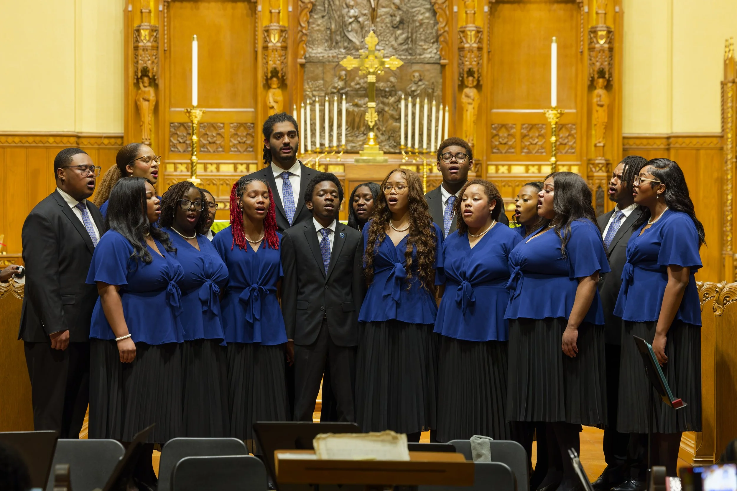 Where Fisk, our alma mater stands, majestic, dear old Gold & Blue.